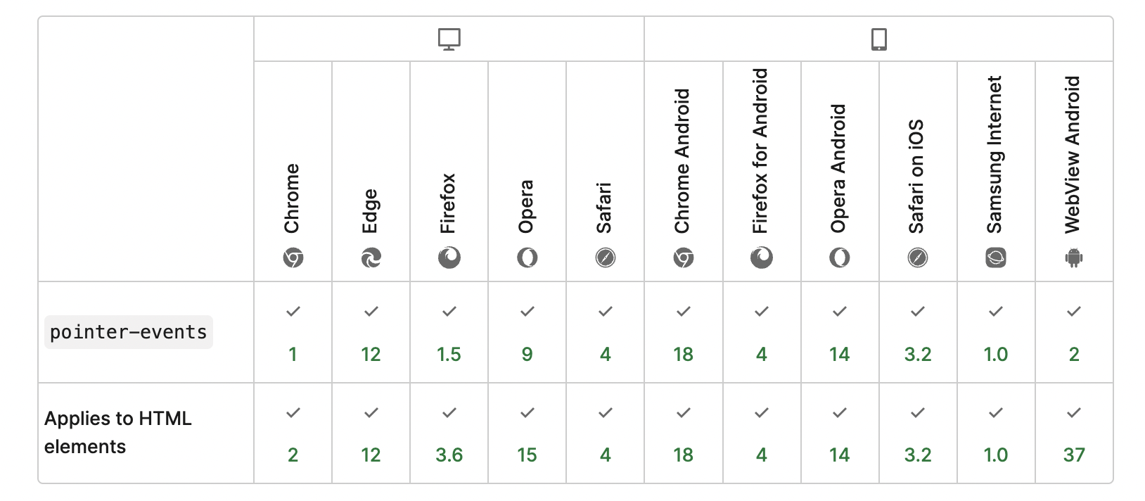 - 부모 요소에 pointer-events: none 속성이 부여되어 있고, 하위 요소가 pointer-events: auto 속성을 가졌다면, 해당 자식 요소는 이벤트 버블링 또는 캡쳐링 과정에서 부모 요소의 이벤트 리스너가 호출될 수 있다.