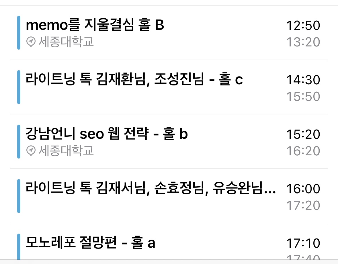내가 선택한(계획한) 세션은 아래와 같았다.