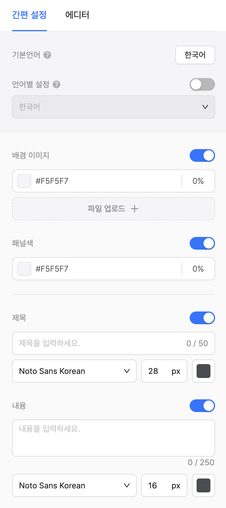 본격적인 결과물 비교에 앞서 내가 만들어야 하는 에디터 설정 패널 UI는 아래와 같았다.