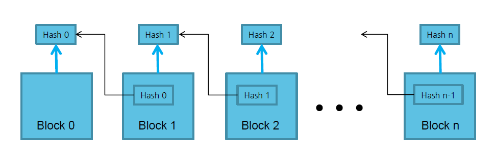 또한 새로 만든 블록은 앞서 만든 블록 체인 뒤에 덧붙고, 이런 과정을 일정 간격으로 반복되기 때문에 조작하는 것도 많은 시간이 소요됩니다. 예를들어 만약 순서대로 Block-1, Block-2, Block-3 이라는 블록이 생성되었다면, 최근에 생긴 Block-3의 정보는 Block-2이 가지고 있고 Block-2의 정보는 Block-1이 가지고있기 때문에.. 만약 10000개의 블록으로 이루어진 블록체인을 조작하기 위해선 10000개의 블록을 전부 수정해야 합니다.. 이 뿐만 아니라 10000개의 블록을 조작하는 사이 10분간격으로 새로운 블록이 생성되고 체인과 연결되기 때문에 추가적으로 조작해야할 블록은 다시 수만개가 생성될 것입니다.