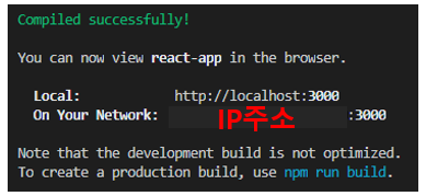 리액트 개발환경을 구축한 후 VSCode의 터미널에서 리액트 개발 환경을 실행할 수 있다. (단, 개발 환경을 구축했던 디렉토리에 접근한 후 해야한다.)