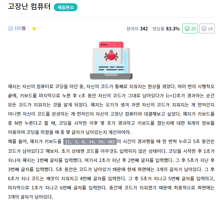 // 1로 초기화한 이유 : 제한시간이 지났어도 입력한 숫자로 인해 최소한 한 개의 문자는 존재하기 때문이다.