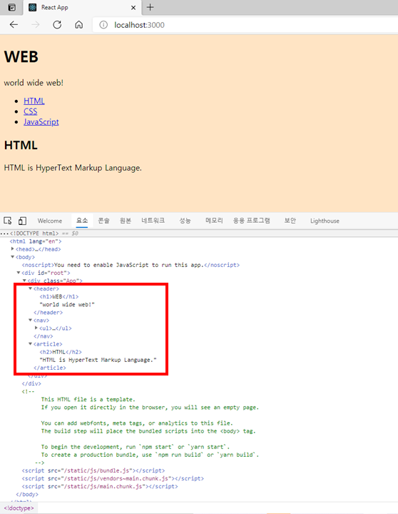[목표] 위의 코드를 리액트를 사용하여 전환해보자
