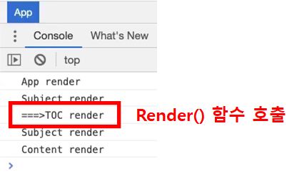 TOC 값을 변경하니 if 조건문을 충족하지 않아 true값이 리턴되어 렌더 함수가 호출된 것을 확인할 수 있다.