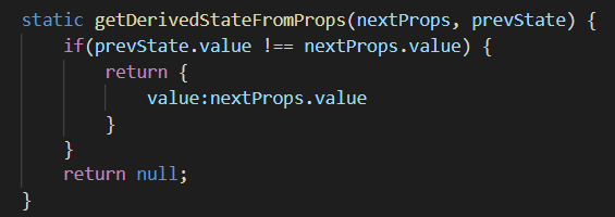 nextProps는 변경될 값이고, prevState는 현재 값이다.
