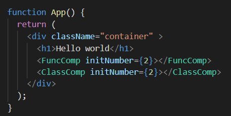클래스형 컴포넌트는 render 함수를 사용해서 return안의 코드를 화면에 보이도록 렌더링 한다. 그에 반해 함수형 컴포넌트인 FuncComp()는 자기 자신이 렌더 함수이기 때문에 render 함수 사용 없이 return 값만 사용한다. 이때, 부모 컴포넌트(App.js)에서 props으로 설정한 값을 클래스 컴포넌트와 함수형 컴포넌트에서는 어떻게 받을까?