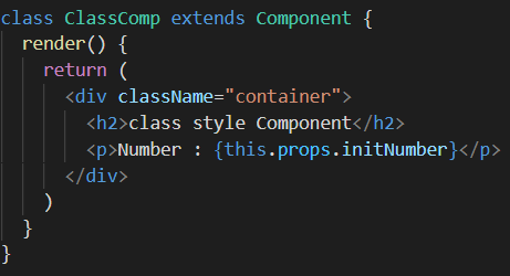 ② 클래스형 컴포넌트 : 클래스형 컴포넌트에서는 부모 컴포넌트에서 정의한 props 값을 {this.props.props이름}으로 받아서 나타낸다.